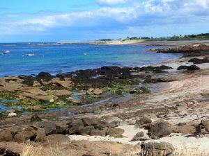 We gingen meteen op een smal pad langs de kust. Later werd het een weg en aan het einde naar het noordoostelijke puntje volgde nog wat zand. We passeerden de vuurtoren. Deze was héél hoog en werd druk bezocht, maar wij liepen door. Even verderop maakten we nog een ommetje langs mooie rotskusten en gingen daarna om een haven heen.