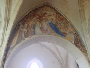 Nadat we ontbeten hadden gingen we op pad. De GR223 liep volgens de kaart achter de camping langs, maar dit pad was afgesloten. Wij liepen daarom voor langs de camping door een parkje. Nadat we de camping voorbij waren volgde een lange saaie rechte weg. Daarna gingen we de stillere gebieden in. In Le Vey hebben we een oud 17e eeuwse kerk bezocht. Deze kerk was echt heel mooi en daarom zeker een bezoekje waard..