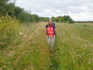 De lucht werd echt donker, en daarom besloten we onze regenpakken al vast aan te trekken voor vertrek. We hadden ze net aan toen het hard begon te regenen. We liepen door naar een kanaal dat vanaf zee naar Carentan liep. Het eerste stuk van eht pad langs het kanaal was goed te doen. Na het feesthuis werd het weer een struinpad met lang gras. We besloten om dit stuk te mijden en zijn daarom op dit gedeelte op de weg parallel aan het kanaal gaan lopen. Deze we g was heel rustig.
