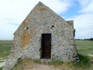 Na dit duingebied hebben we nog een lange tijd langs de baai gelopen tot voorbij Saint Germain sur Ay. Even voor dit plaatsje hebben we op picknickbank in de luwte geluncht. Net na de lunch kwamen we langs een kapelletje op een uitstekende rots in de baai. Even verder liepen we door het dorpje St Germain sur Ay.