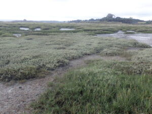 Na de lunch moesten we soms over enkele kleine heuvels om zo om privé terrein heen te lopen. Tegen het einde van de etappe kwamen we weer langs een paar zandstranden, maar de rotsen waren altijd dichtbij. Vanwege eb was het water ver te zoeken en kon je er daarom niet zwemmen.
