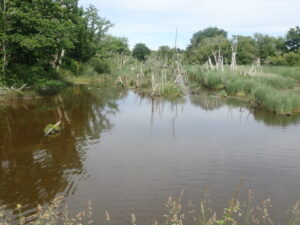 Bij restaurant Grand Large gingen we weer op een muurtje zitten voor de volgende pauze. Daarna liepen we een stukje het binnenland in en vervolgens enkele kilometers langs de rand van een natuurgebied. Hierna gingen we weer het strand op en ook hier was het weer zwaar. Op het strand was een onderbreking met een stukje rotsen waar we overheen zijn rotsen geklommen.