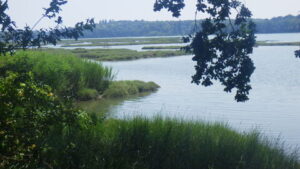 Vervolgens kwamen we langs de haven en veel restaurants. Wij liepen door en gingen Auray uit. We kwamen weer op een smal pad langs de baai, soms vlak, soms over planken en dan weer enkele kleine heuvels. Het was mooi lopen maar wel erg warm. Gelukkig waren er ook vrij veel bomen.