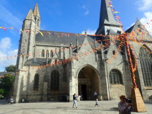 Na dit bezoek hebben we in het centrum van Guérande nog even op een bankje gezeten voor onze lunch. Toen zijn we vertrokken voor onze etappe. We dachten dat we pas om 17:00 uur in ons appartement konden, maar we kregen kort na het middaguur bericht dat deze eerder beschikbaar was.