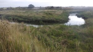 Na dit hobbelige pad liepen we enkele kilometers langs de baai op, totdat we een wat drukkere weg bereikten. Het pad liep ruim een kilometer langs deze weg op, maar we hoefden niet langs deze weg gelopen. Daarna gingen we aan de andere kant van de baai weer richting zee. Het was hier genieten van de vele vogels en de stilte.