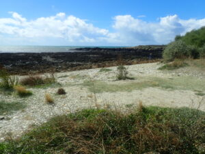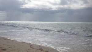 Na het ontbijt vertrokken we en hebben we eerst boodschappen gedaan voor tweede deel van ons ontbijt (yoghurt en banaan) en voor de lunch. Daarna zijn we naar het strand gelopen en hebben we ons ontbijt voltooid. Het was een beetje een saaie etappe waar we heel lang over het strand gelopen hebben. Het was deze dag prima wandelweer, zon en wolken en een paar korte buien.