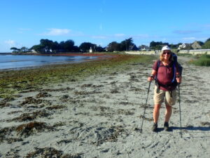 Het eerste stukje van de etappe ging langs de boulevard. Toen deze ophield werden wij door de markering het binnenland ingestuurd. Wij besloten toen om over het strand te lopen, maar een heel stukje verder werd het te lastig op het strand en gingen we het binnenland in. Daar waren we al snel weer op de officiële route van de GR34.
