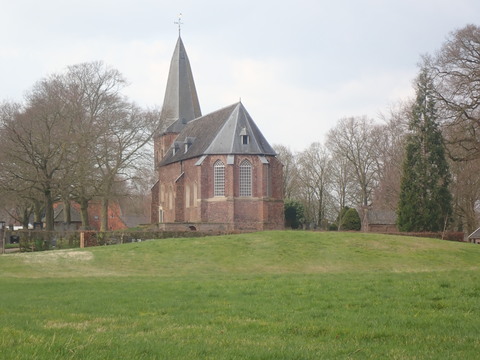 We liepen buiten het dorpje Hummelo langs door afwisselend bos en landerijen. Na Hummelo liepen we over mooie smalle bochtige paadjes, die soms wel wat modderig waren. Daarop volgde weer een brede weg naar het volgende plaatsje Hoog-Keppel. Dit was een heel stil dorpje met een mooi kerkgebouw. Na dit dorpje gingen we weer het bos in. We hoopten hier een bankje te vinden voor onze volgende rustpauze. Maar ons geduld werd op de proef gesteld. Pas in het volgend dorpje Drempt was weer een picknickbank op een speelplaatsje. Het was hier wel heerlijk in de zon.