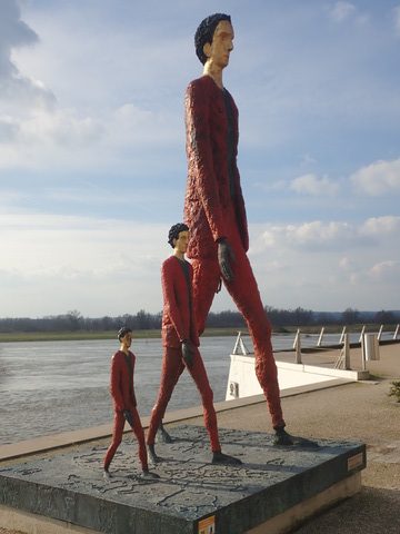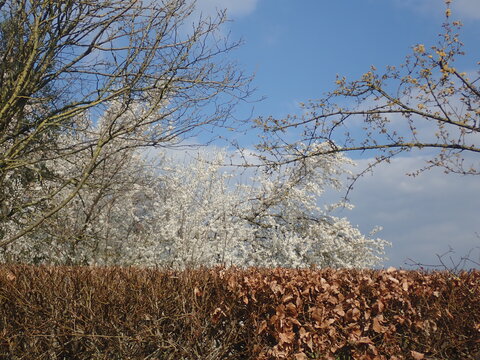 Tegen tien uur begonnen we aan onze etappe. Het eerste gedeelte ging langs een vrij drukke straat richting het centrum van Doetinchem. We liepen over de winkelstraten dwars door het centrum heen. We vonden het centrum niet bijzonder, zeker niet het mooist gedeelte van de etappe. Vanaf het centrum liepen we naar de stadstuin. We gingen er even in om van de eerste signalen van het voorjaar te genieten. Via een parkje en een straat kwamen we in een volgend parkje, waar we een paar hele oude grillige beuken met dikke stammen bewonderden.