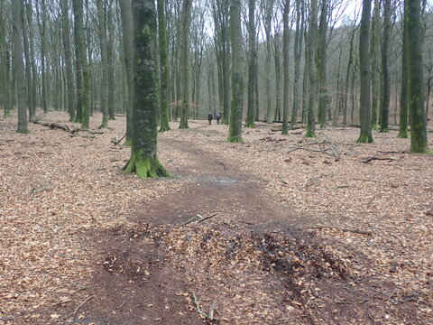 Na deze top gingen we meteen weer even naar beneden en liepen we over mooie bospaden door een lichtglooiend gebied. Zoals altijd was het meteen weer gezellig met weer heel wat leuke en soms diepe gesprekken. Nadat we een paar kilometer gelopen hadden kwamen op een smal nogal modderig pad langs een hek op. De grote hoeveelheden regen van de laatste tijd maakten dit tot een extra uitdaging. De soms strakke gezichten toonden de focus van de wandelaars om hier goed door heen te komen.