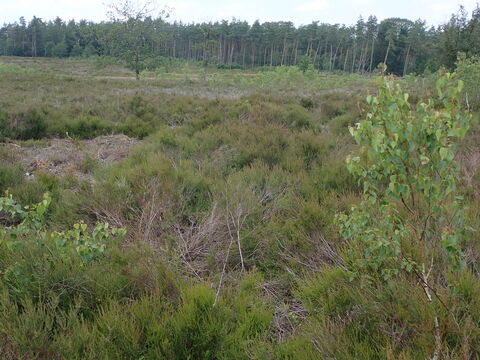 Na de koffie en een korte dagopening vertrokken we met een elftal enthousiaste wandelaars naar de etappe van deze dag. We reden eerst naar ons eindpunt op Het Leesten. Daar lieten we drie auto’s achter. Met de overige drie auto’s reden we via een toeristisch route naar het beginpunt bij de Woeste Hoeve. Daar was een prachtige schaduwplek om de auto’s te parkeren. Helaas was dit privé terrein. We hebben de auto’s daarom maar aan de weg geparkeerd.